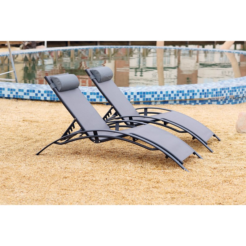 Bahia lot de 2 transats empilables et ajustables en alu gris-noir