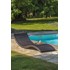 Bain de soleil CANCUN en résine tressée chocolat et structure aluminium, léger et empilable.