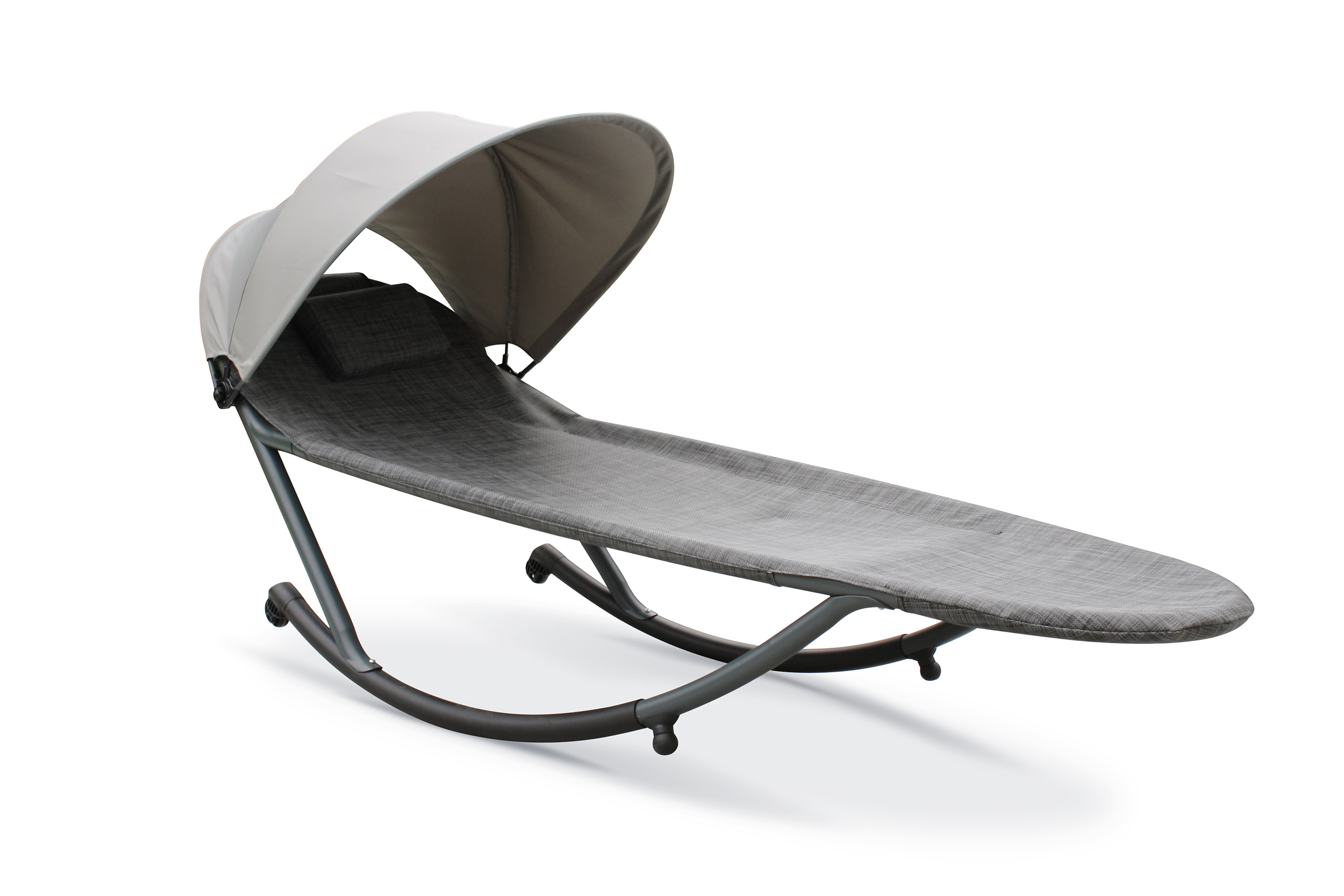 Bain de soleil HOSSEGOR basculant avec tètière et brise-soleil. Structure en acier, assise, dossier et tètière en textilène.