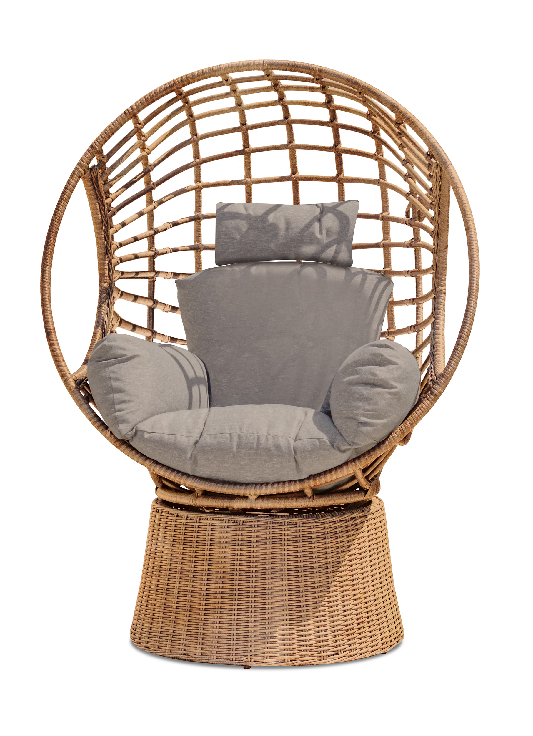 Balancelle de jardin BORABORA en résine tressée avec assise pivotante. Coussins déhoussables 250 g/m² garni polyester (20kg/m3).