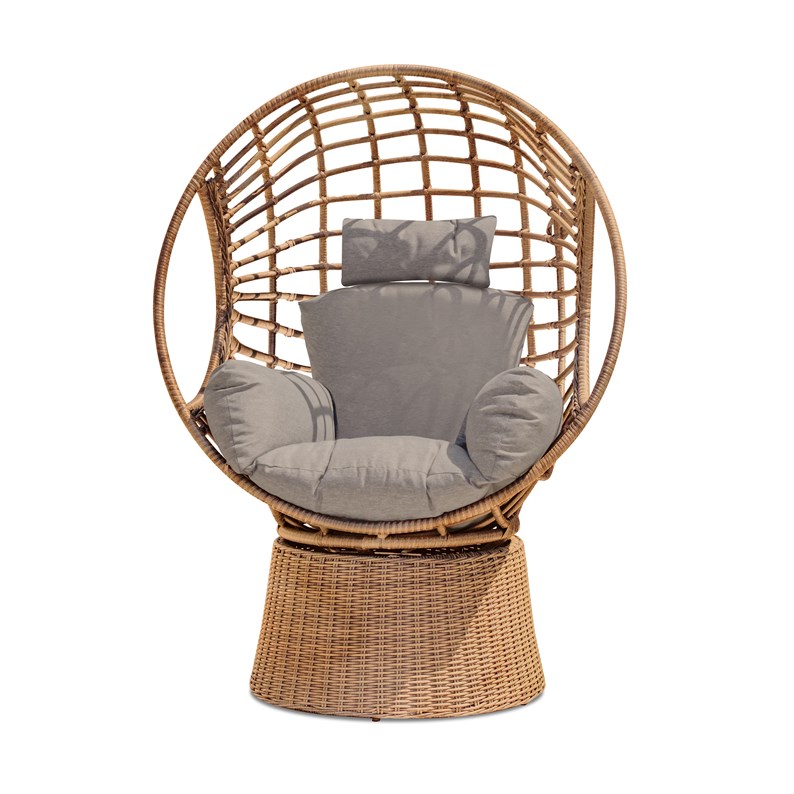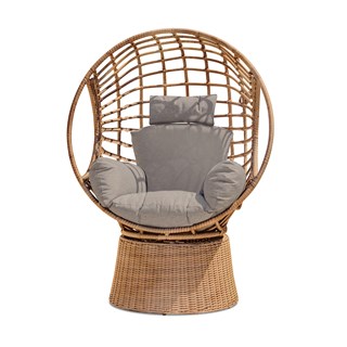 Balancelle de jardin BORABORA en résine tressée avec assise pivotante. Coussins déhoussables 250 g/m² garni polyester (20kg/m3).