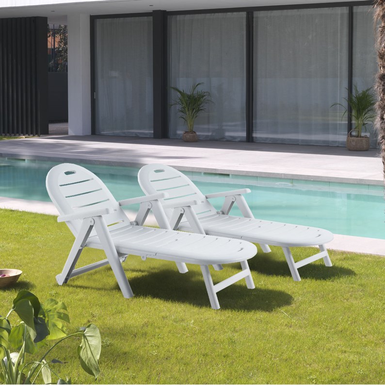 Lot de 2 bains de soleil en plastique blanc