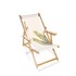 Chilienne de jardin LONA pliante, avec accoudoirs, en toile 100% coton blanc écru avec motif feuilles coloris vert pomme/vert et chassis 100% bois d'eucalyptus PEFC. Dossier réglable 4 positions. Toile amovible. Fabrication artisanale. Recyclable.