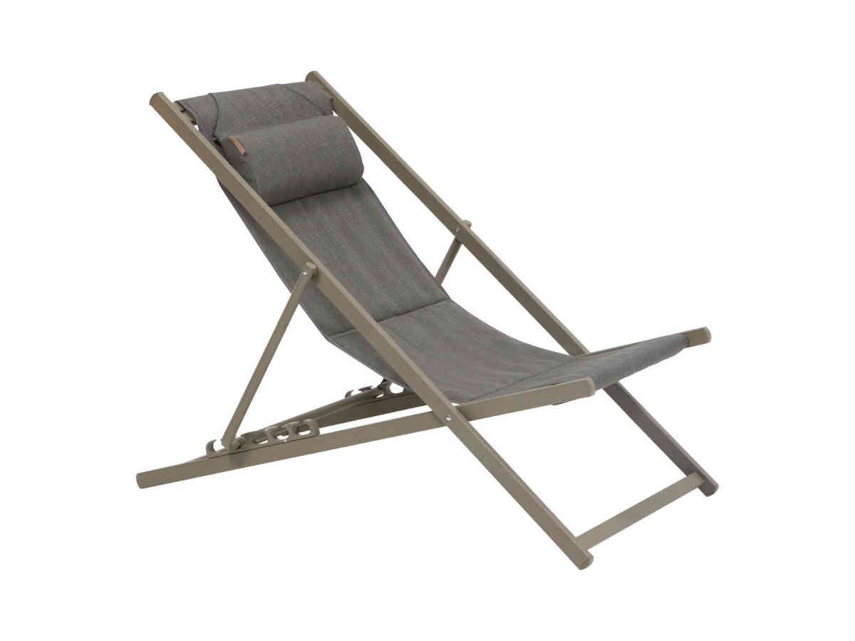 Grâce à ses 5 niveaux d'inclinaison, chacun peut ajuster la position souhaitée, qu'il s'agisse de se relaxer, de lire ou simplement de profiter du soleil. Son cadre en aluminium lui confère une grande légèreté, facilitant son déplacement comme son rangement, d'autant plus que la structure est entièrement pliable.