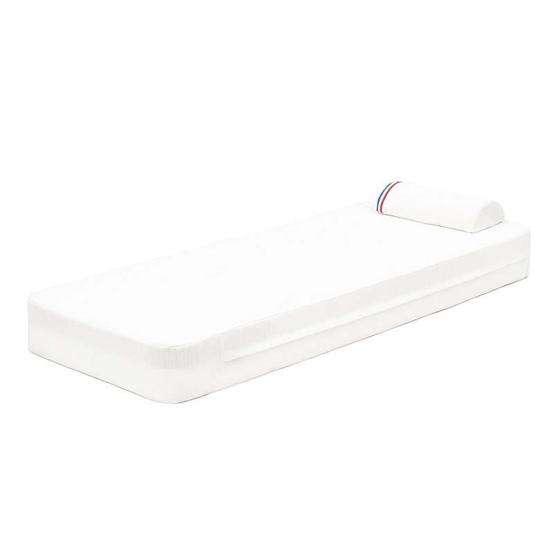Un matelas 2 en 1, en mousse et en tissu batyline waterproof blanche pour en profiter sur l'eau et sur le bord de votre piscine.