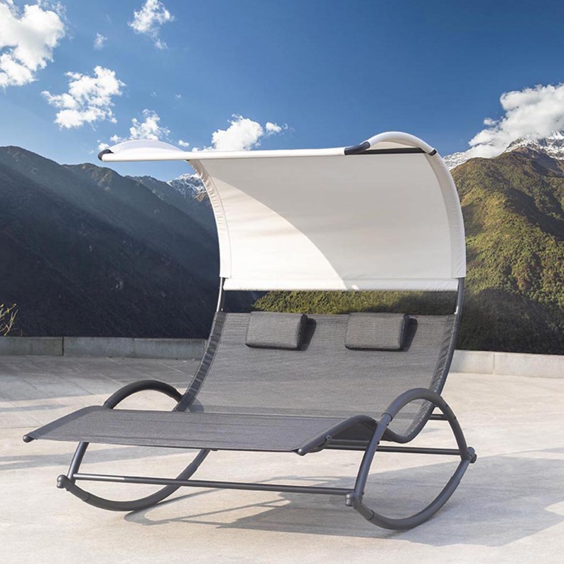 Vous rêvez de vous reposer à deux au soleil cet ete ? Ce transat à bascule est fait pour vous ! Son design et ses couleurs lui permettent de s'integrer à chaque decoration d'exterieur, il ira à coup sûr bien dans votre jardin !