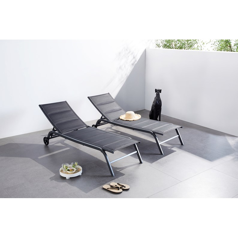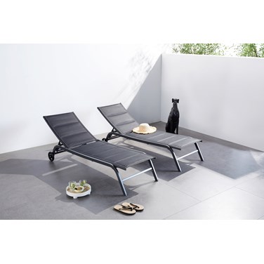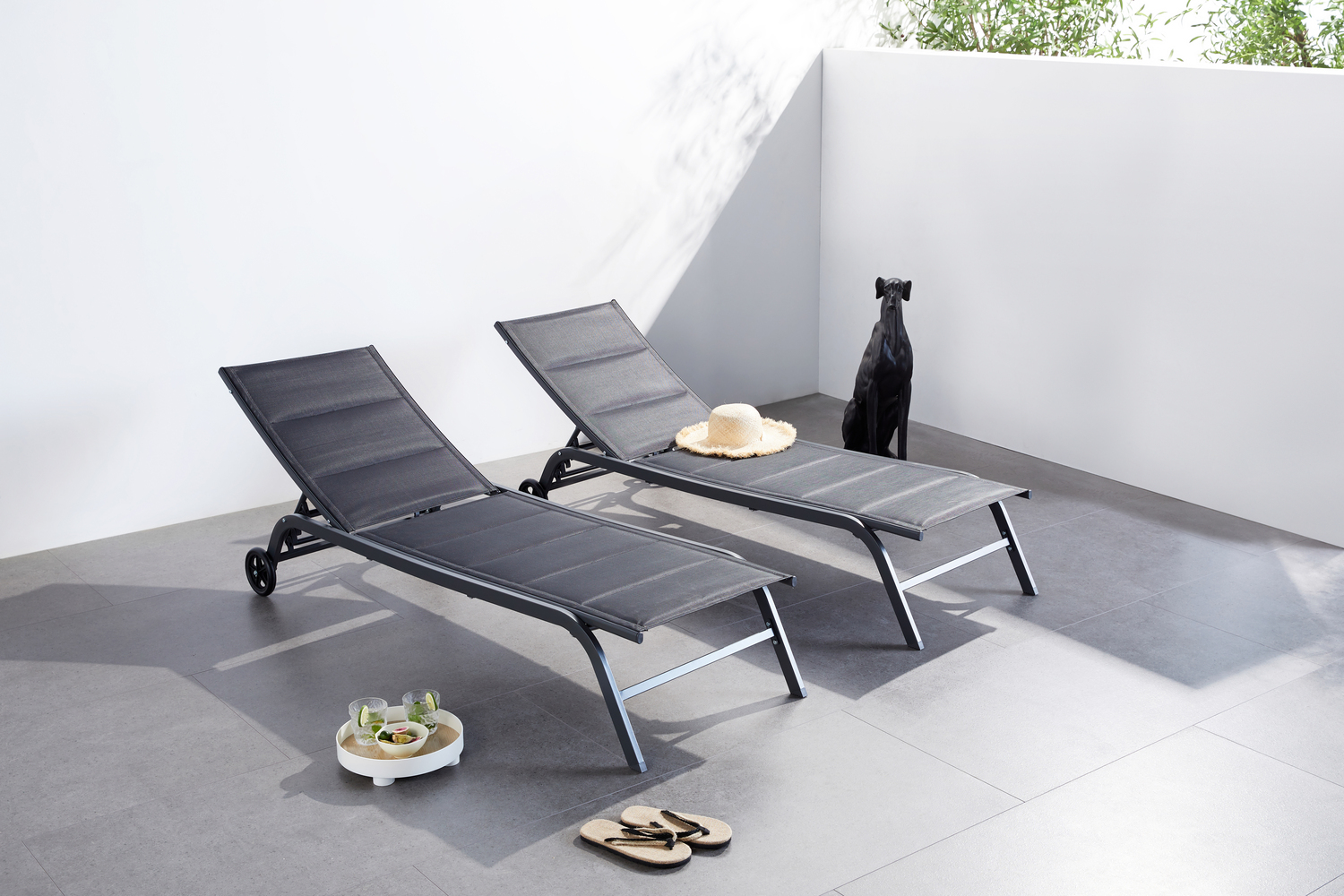 Detendez-vous au soleil avec le lot de 2 transats Lisboa ! Conçus pour l'exterieur, la structure en aluminium et l'assise en toile PVC les rend robustes. Pratiques et legers, vous pourrez les deplacer facilement à l'aide de leurs 2 grosses roues. Il ne reste plus qu'à vous detendre en choisissant l'une des 5 positions d'inclinaison, et profitez du beau temps !