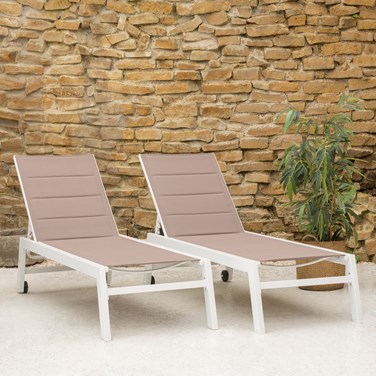 Lot de 2 bains de soleil barbados en textilène taupe - aluminium blanc