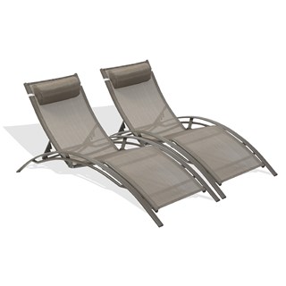 Lot de 2 bains de soleil en aluminium et toile plastifiée cappuccino
