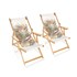 Lots de 2 chiliennes de jardin LONA pliantes, avec accoudoirs, en toile 100% coton blanc écru avec motif jungle vert/rouge/vert pomme et chassis 100% bois d'eucalyptus PEFC. Dossier réglable 4 positions. Toile amovible. Fabrication artisanale. Recyclable.