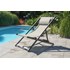 Lot de 2 chiliennes de jardin JULIA pliantes en toile plastifiée grise et structure aluminium gris anthracite. Coussin repose-tète avec fixation par velcro. Dossier réglable 5 positions.