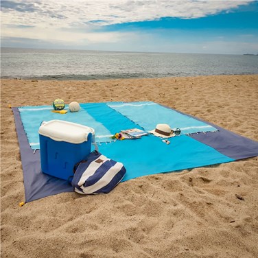 Idéal pour apporter du  confort à la plage , ce tapis de plage  anti-sable  Linxor  protège votre famille  et vous-même des désagréments du sable. Avec sa  taille XXL  de 270 cm par 240 cm,  3 à 4 personnes  peuvent s’y installer confortablement. Le tapis de plage anti-sable  résiste au sable et à l’eau . Réalisé en polyester  durable et léger , le sable  ne colle pas à la couverture et s’enlève facilement . Également  étanche ,  l’eau ruissèle  et ne pénètre pas le tissu. A l’aide de ses pics de type sardines en plastique,  crochetez solidement  le tapis de plage anti-sable grâce aux encoches prévues à cet effet en les enfonçant dans le sable simplement. Le tapis de plage est fourni avec 4 piquets de plage,  une pochette de rangement  et  un mousqueton pour l’accrocher aisément.   Le tapis de plage anti-sable mesure 270 cm de longueur par 240 cm de largeur.