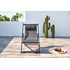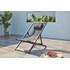 Craquez pour ce transat inspire du design des chiliennes pour profiter du soleil cet ete. Inclinable, il vous permettra de trouver la position la plus adaptee pour vous installer confortablement. Dôte d'un coussin en guise d'appui-tête, cette chilienne vous promet encore plus de confort ! Son design tendance et sa couleur epuree lui permettront de s'integrer à chaque type de decoration d'exterieur. Pliable, vous pourrez la ranger facilement pour gagner de la place lorsque vous ne l'utiliserez pas. Sa structure en aluminium vous assure solidite et longevite, et sa toile en texylène est elle aussi très resistante aux intemperies. Ce transat sera votre meilleur allie des beaux jours !