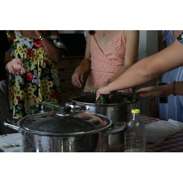 Votre aventure se poursuivra avec la création de bains de teinture, où vous découvrirez comment extraire des teintes riches à partir de végétaux de saison. Vous y plongerez alors différents échantillons de fibres textiles, révélant une palette de nuances vibrantes.