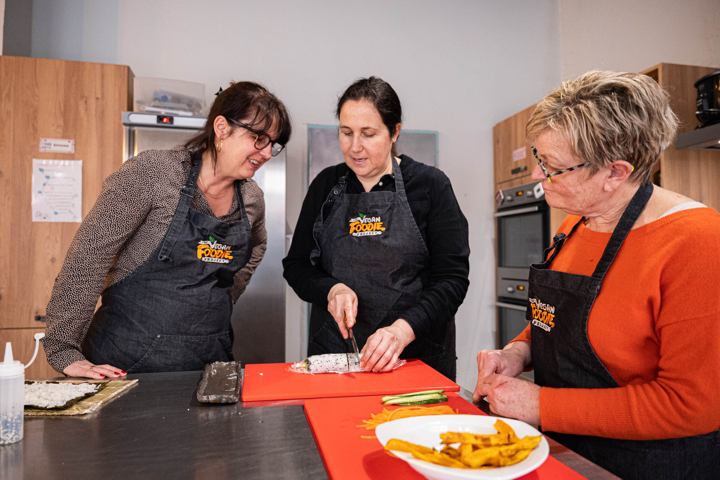 Cette artisane passionnée sera ravie de vous accueillir lors de votre arrivée sur les lieux de l'atelier. Après avoir fait connaissance autour d'une boisson chaude, elle commencera par vous expliquer le déroulé de la session, ainsi que par vous présenter le menu du jour. Au programme ? La réalisation de délicieux makis et sushis entièrement vegan, à base de carottes, avocats, algues fumées, concombre mariné, aubergine, miso ou patate douce en tempura... De quoi se régaler !