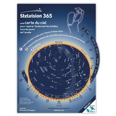 - Pour une découverte facile du ciel étoilé : sous la forme pratique d'un dépliant cartonné de 4 pages, Stelvision 365 réunit une carte du ciel, et 3 pages de guide d'observation des merveilles du ciel.