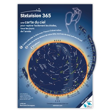 - 15ème édition – plus de 195 000 exemplaires vendus depuis 2011. C'est un guide de base pour explorer facilement le ciel : sous un format pratique (dépliant cartonné double-A4), la carte-guide du ciel Stelvision 365 comprend une carte générale du ciel et trois pages de guide vers les principales merveilles célestes.