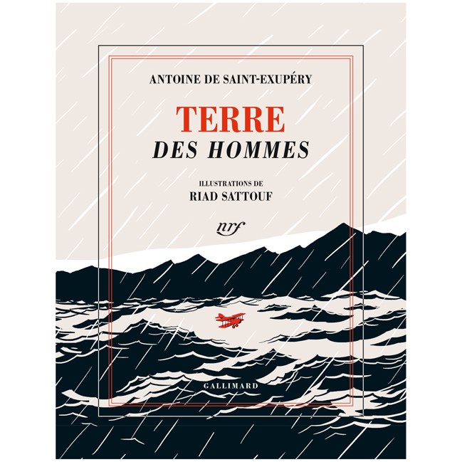 La lecture de Terre des hommes a été un véritable choc. Depuis, je le relis chaque année, inlassablement. Il provoque toujours en moi un flot d’images et de sensations. C’est un livre qui élève. Un livre profondément accueillant. L’acharnement presque mystique des pilotes de l’Aéropostale, le désert, l’amitié fraternelle, l’action, la mort, la mélancolie d’exister et l’émerveillement face à la beauté et à la brutalité de la nature… Rencontrer ce livre si jeune m’a donné l’envie de vivre le coeur battant — et c’est formidable, quand on débarque sur la Terre ! Illustrer les romans d’aviation de Saint-Exupéry a toujours été un rêve. Depuis vingt ans, un portrait photographique de lui, pris à la fin de sa vie, est accroché dans mon bureau. Il me regarde dessiner, de ses yeux en demi-lune. Un matin, je me suis rendu compte que j’étais devenu plus âgé que lui. Et c’est là que, bizarrement, je me suis senti autorisé. J’espère apporter ma petite pierre au mythe Saint-Exupéry : permettre à une nouvelle génération de lectrices et de lecteurs de découvrir ce texte magnifique, plein d’aventures humaines et d’émotions — afin qu’il leur donne, à eux aussi, l’envie de vivre le coeur battant ! » Riad Sattouf