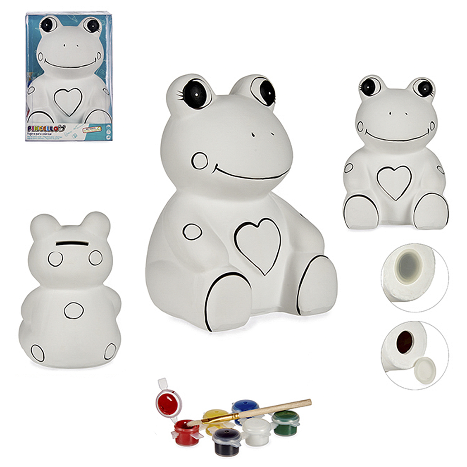 Grande tirelire représentant une grenouille : • Comprend 6 peintures colorées et 1 pinceau. • Créez des designs uniques et entièrement personnalisés.