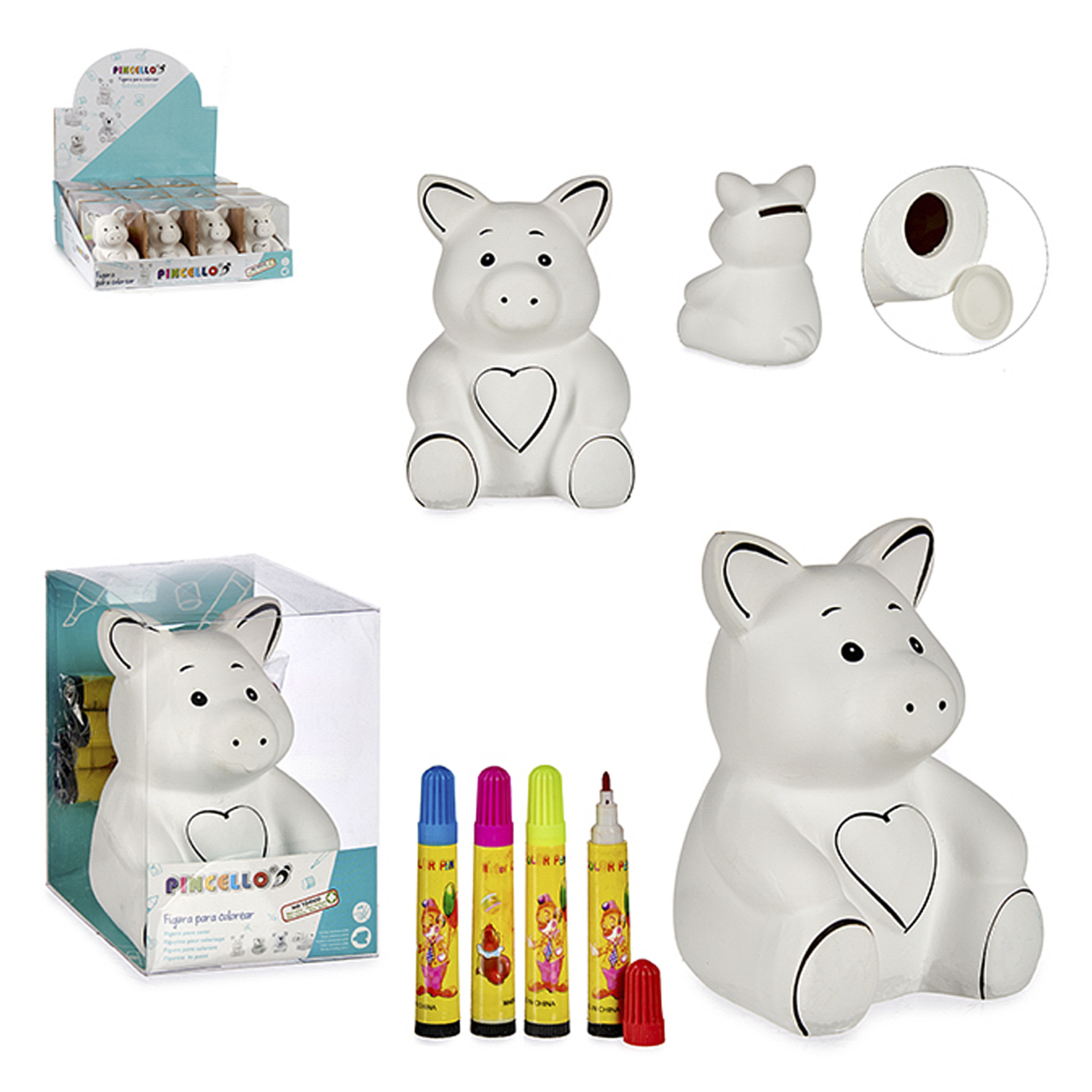 Tirelire cochon en céramique avec 4 marqueurs