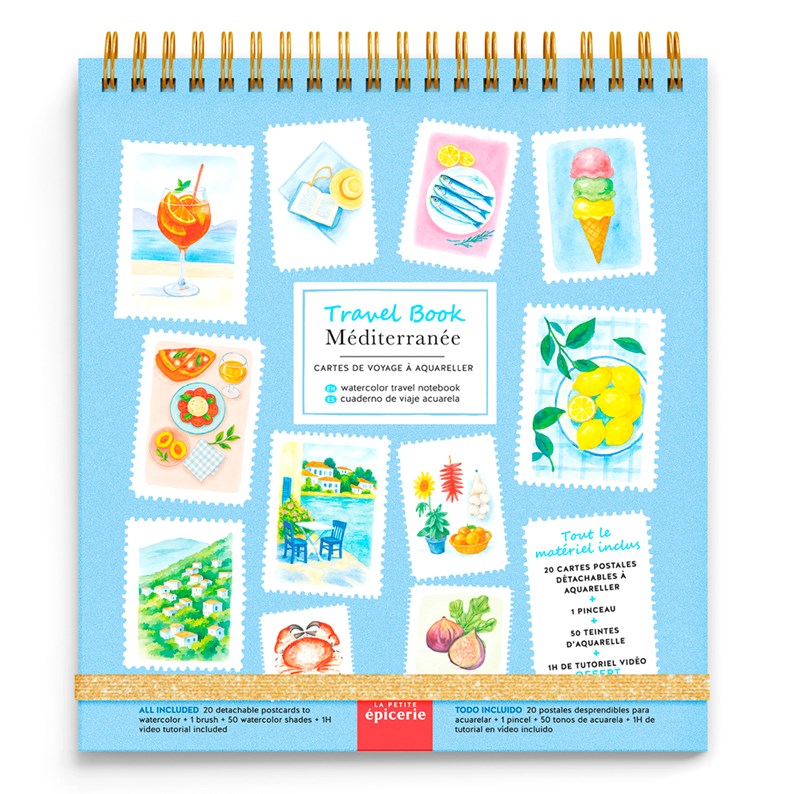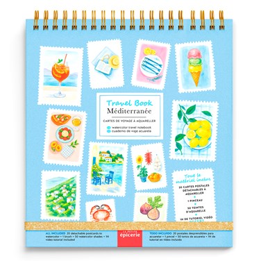 Destination : la Méditerranée ! Un spritz, de jolis citrons juteux, un paysage de bord de mer, des sardines aux couleurs vibrantes… Retrouvez tout le charme des vacances ensoleillées dans ce carnet d'aquarelle inspiré du Sud. Malin : les 20 illustrations se détachent pour servir de cartes postales à envoyer à vos proches.