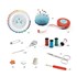 Contient : 24 bobines de fils colorés, 2 planches de boutons, 1 mètre ruban enrouleur, 1 pochette de 12 aiguilles, 2 passe-fils, 9 épingles à nourrice (3 tailles différentes), 1 roue d'épingles, 1 coussin à épingles, 1 dé à coudre, 1 découseur, 1 paire de ciseaux.