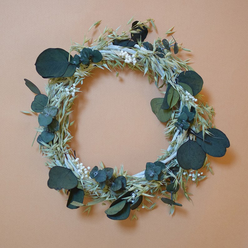 Avec ce kit , apprenez à confectionner votre propre couronne de fleurs séchées !
