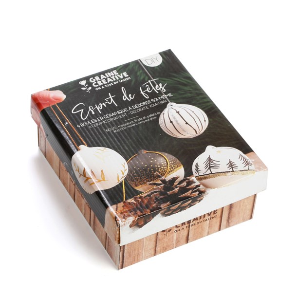 - Ce coffret contient tout le nécessaire pour décorer 4 boules de Noël en céramique.
