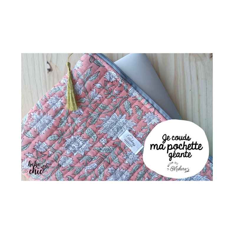 La pochette géante vous permettra d'apprendre à molletonner votre tissu et fabriquer une très grande pochette (dimensions : 28 * 38 cm)