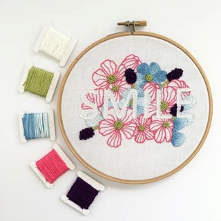 Ce ne sera plus un problème très longtemps si vous cousez ce kit de broderie positive orné de motifs floraux reprenant le mot Smile.