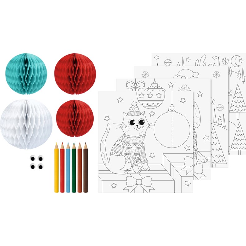 - 4 x Cartes à colorier (Chat, chien, renne, bonhomme de neige)