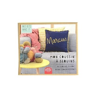 Grâce à ce coffret d'activité manuelle , personnalisez une housse de coussin grâce à du galon à pompons et des sequins.