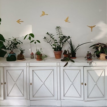 Il existe 4 modèles d’oiseaux uniques et dessinés à la main. La peinture dorée apportera une note délicate à votre création et se glissera facilement dans tous les intérieurs. Un système d’attache testé et approuvé, pour que vos jolies hirondelles restent bien accrochés à votre mur … sans faire de trou !