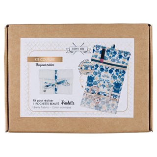 Avec ce kit vous allez réaliser une jolie pochette pour ranger vos bijoux et accessoires de beauté. Elégante et simple avec ses détails dorés, son Liberty et son matelassé de coton, elle deviendra indispensable lors de vos voyages. La pochette possède : 1 poche avec fermeture Eclair, qui permet de garder en sécurité vos accessoires, une pochette en filet et une bande élastique pour accrocher bijoux ou barrettes.