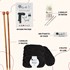 - Kit complet : laine, aiguilles à tricoter, aiguilles de finition, étiquette en tissu et guide pas à pas.