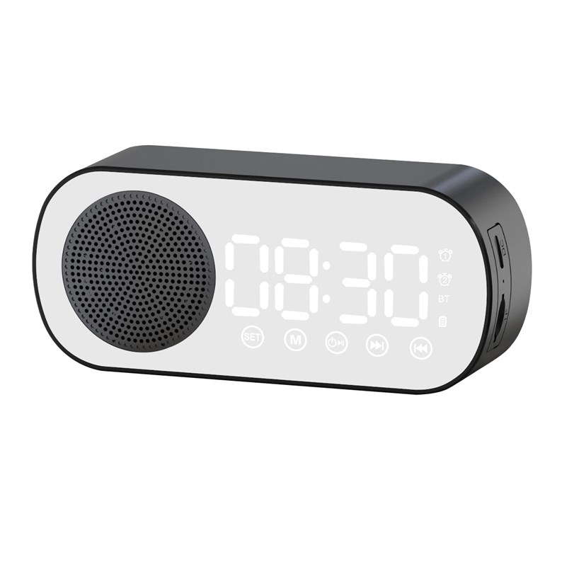 • Horloge, réveil, enceinte bluetooth, radio FM, lecture de carte TF, affichage miroir.