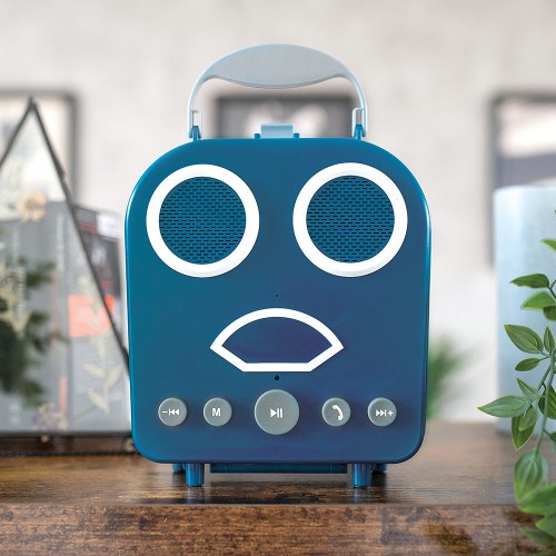Facilement transportable avec sa sangle fournie, le FACESOUND se recharge simplement par USB avec une autonomie remarquable et une qualité sonore idéale pour ce type d'article nomade et déco !