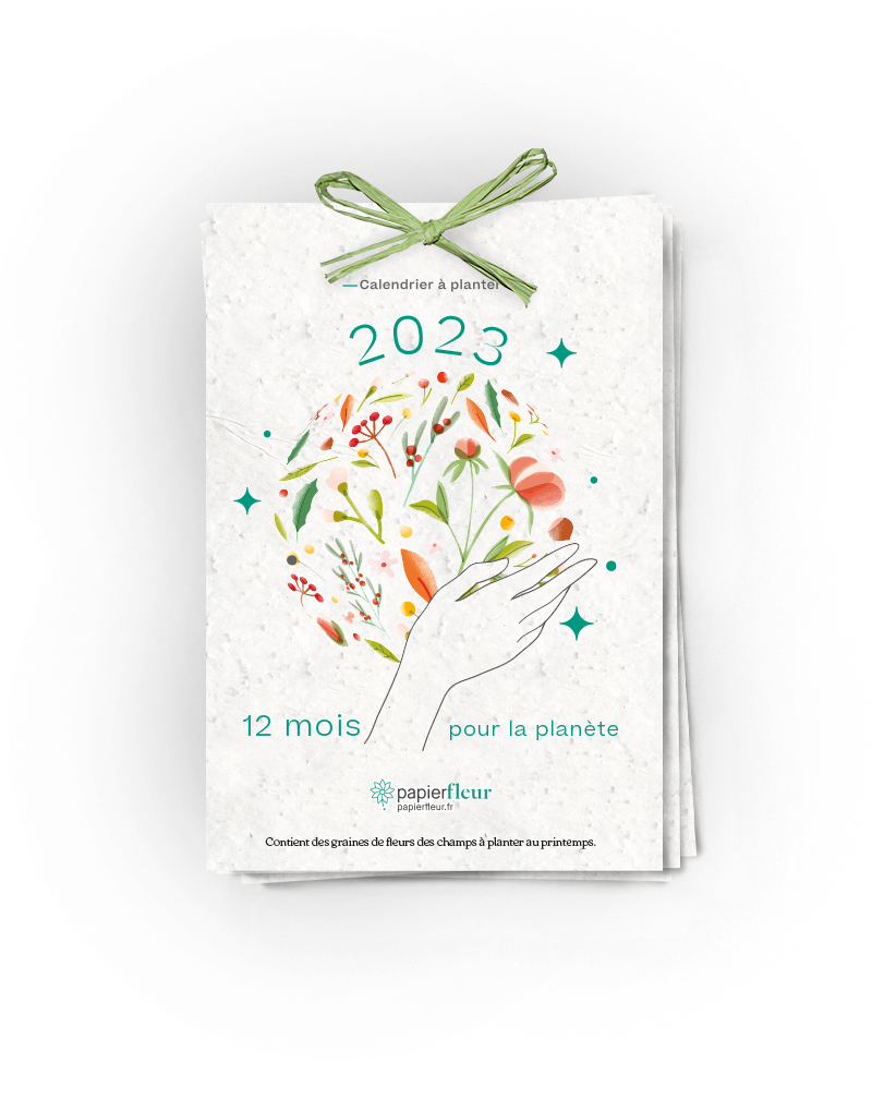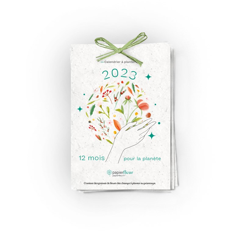 Notre calendrier à planter 2023 ""12 mois pour la planète"" est imprimé avec de l’encre à base d’eau et imprimé dans notre atelier à Paris