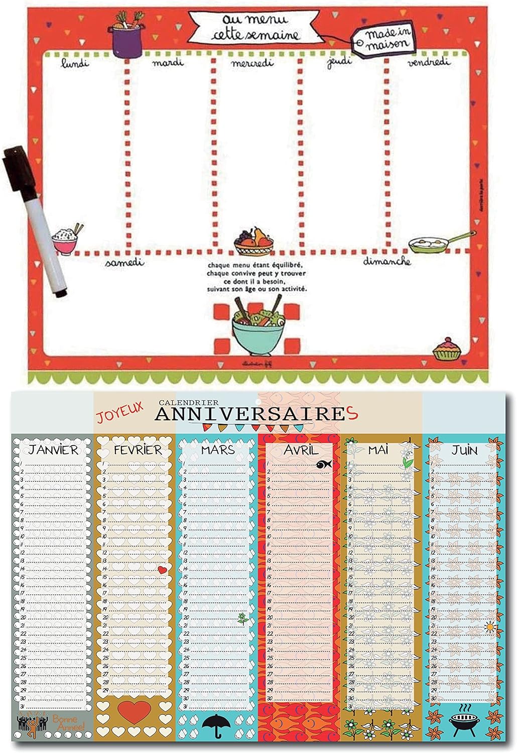 Calendrier anniversaires pérpétuel inscriptible + semainier aimanté à remplir