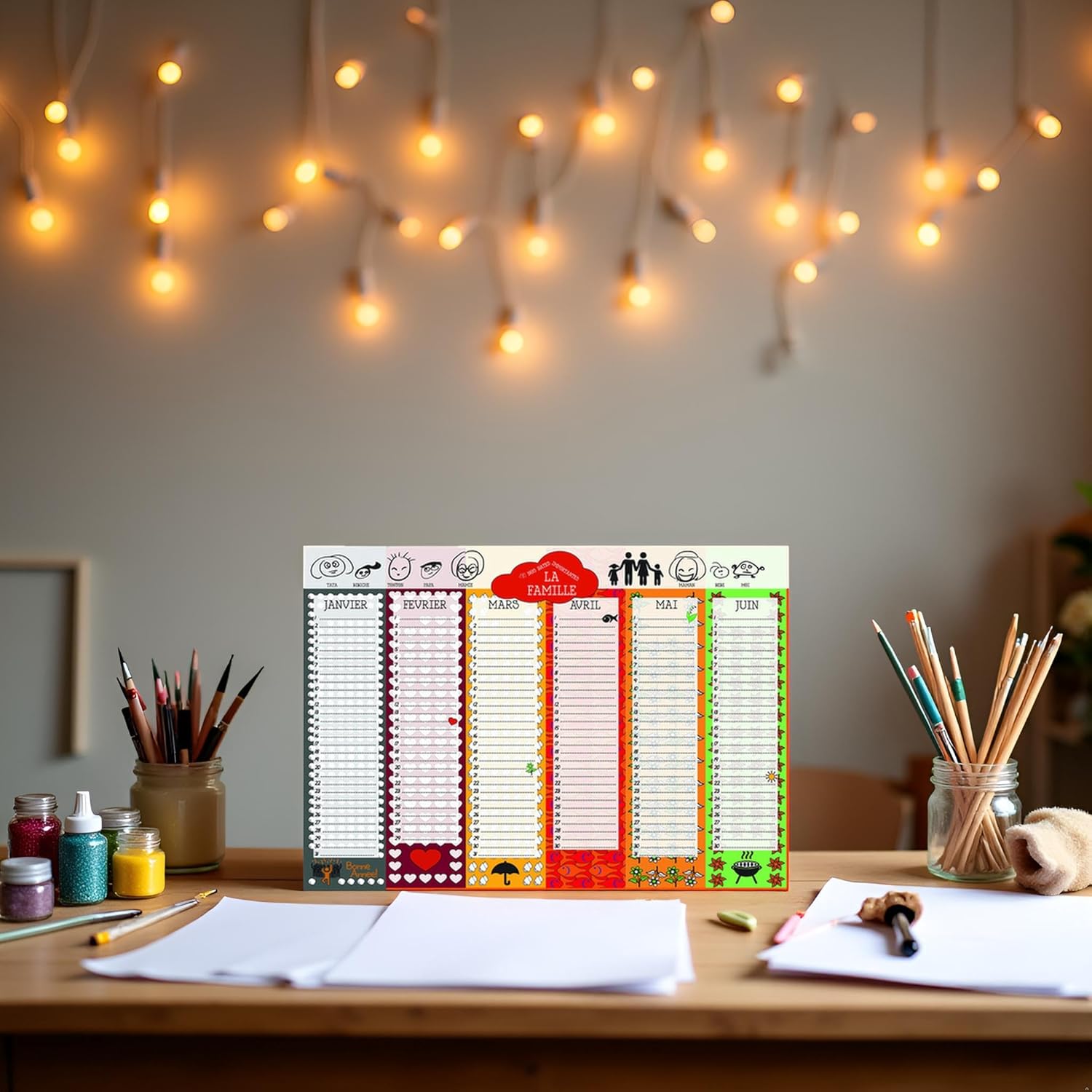 Ce Calendrier Anniversaire Perpétuel au format A3 spécial Famille vous accompagne toute l’année pour garder sous les yeux les événements qui comptent vraiment. Grâce à sa présentation claire mois par mois et son format pratique, il devient un véritable pense-bête du quotidien.