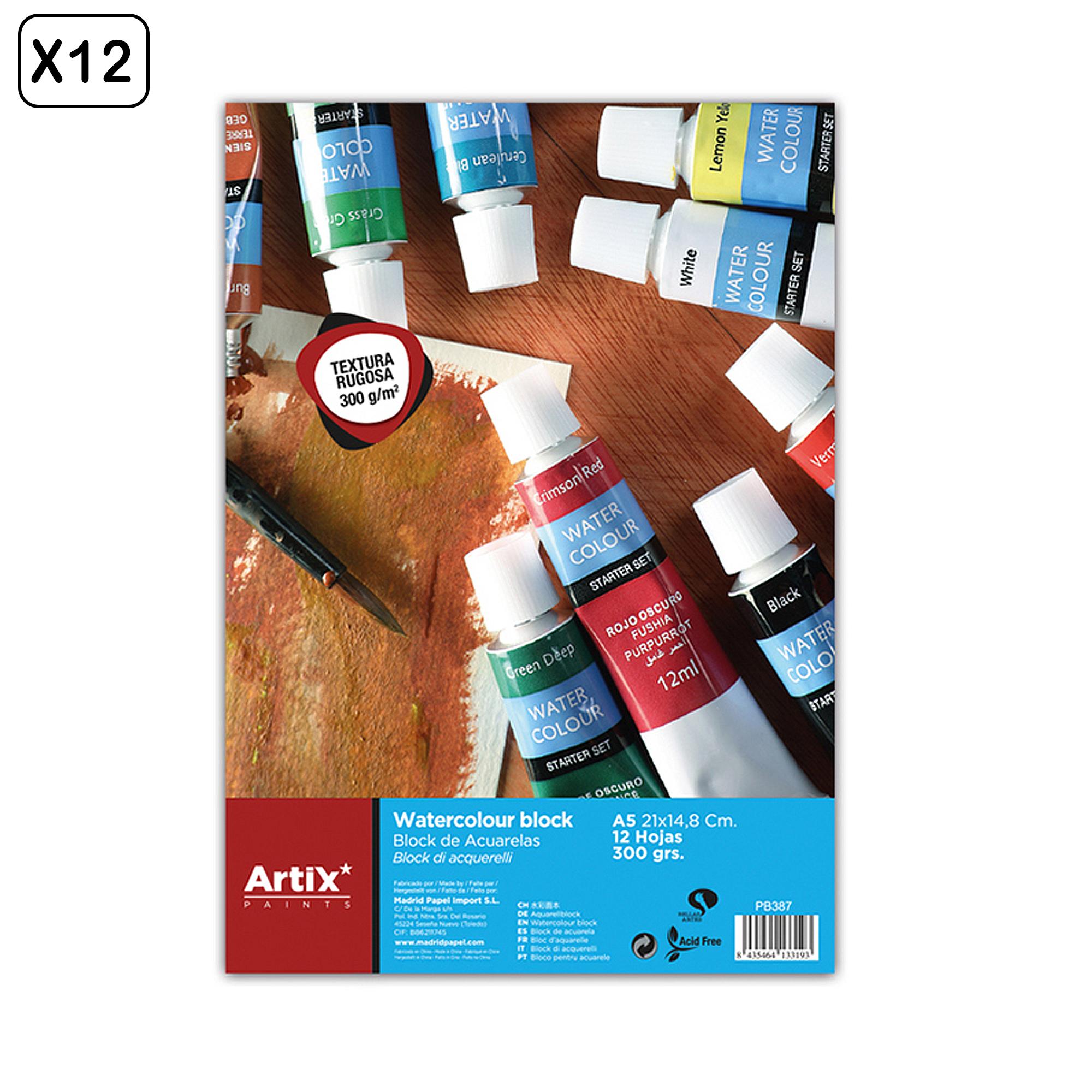 Pack 12 uds bloc d'aquarelle a5 texture rugueuse 300 g m²