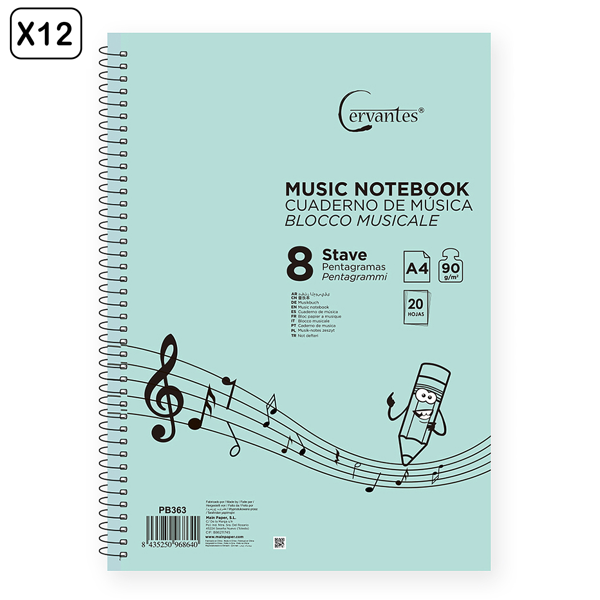 Pack 12 unités cahier de musique 4 portées a5 cervantes