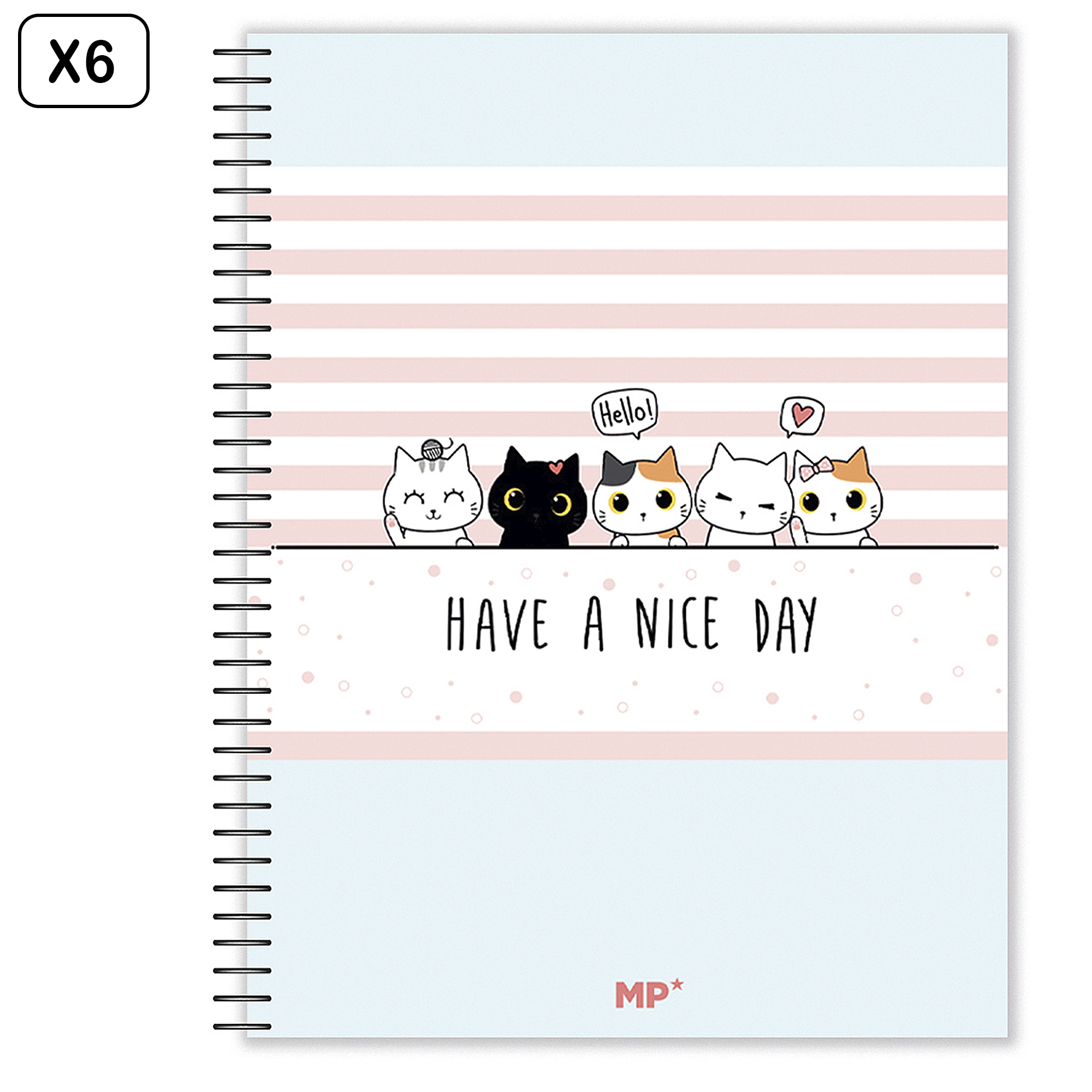 Pack 6 unités cahier extra dur a4 120 feuilles carreau design chatons