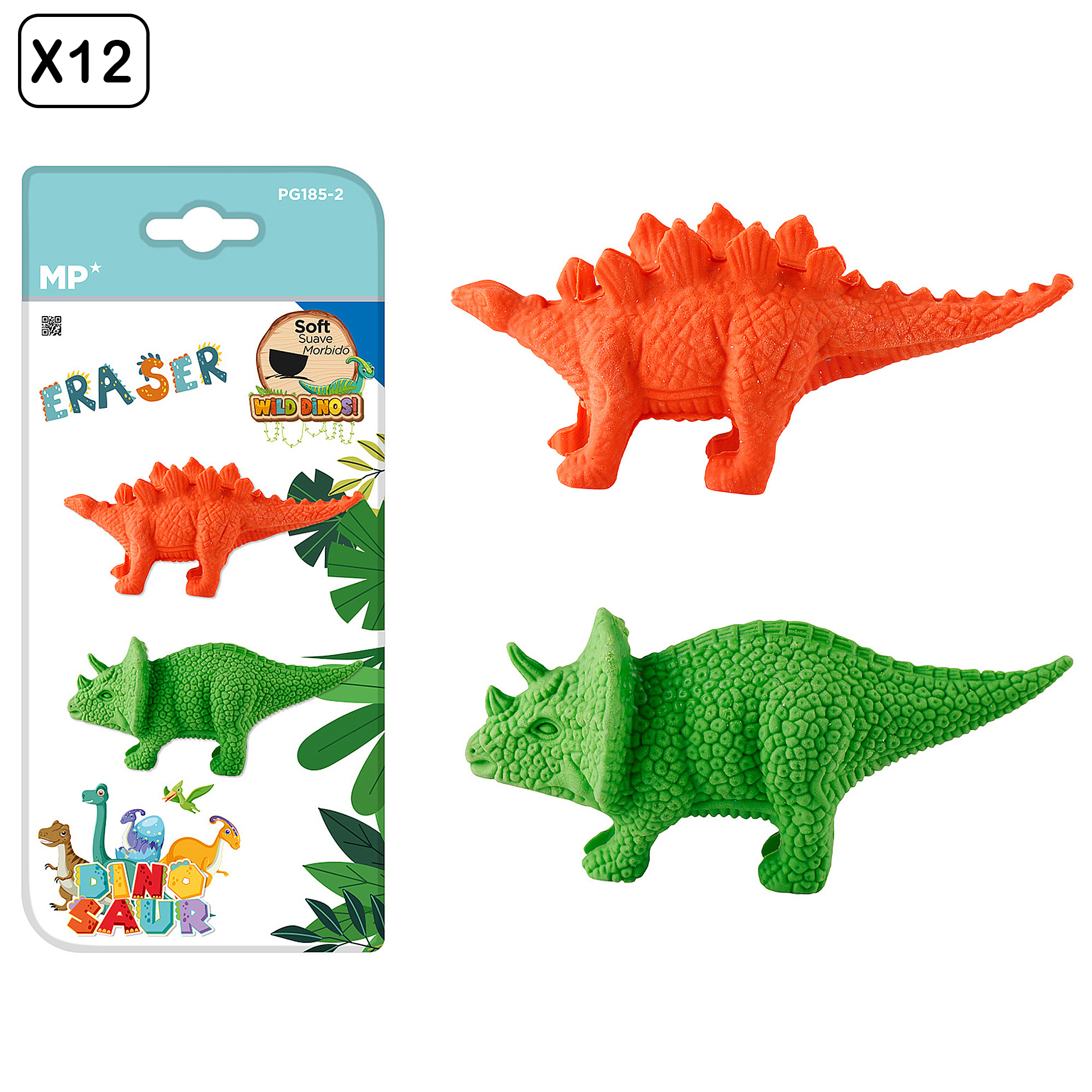 12 packs de gomme de couleur dinosaure 2 uds. Stégosaure et triceratops.