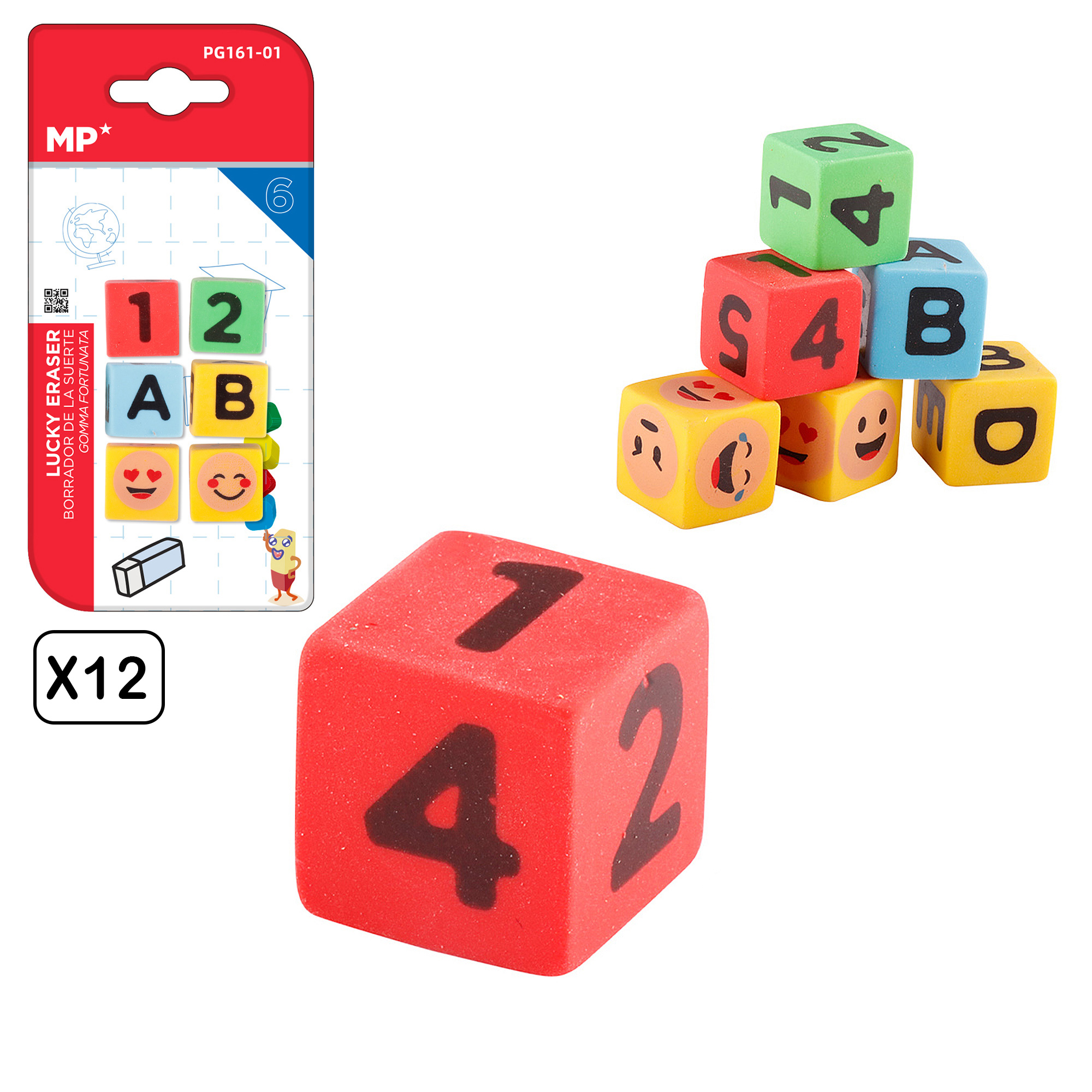 12 packs gommes à rayer dés créatifs design à 6 uds.
