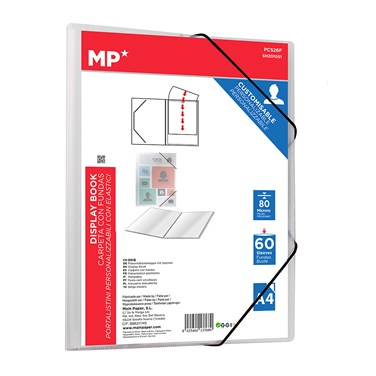 • Fermeture par élastiques et couverture personnalisable. Pour documents A4. 60 poches.