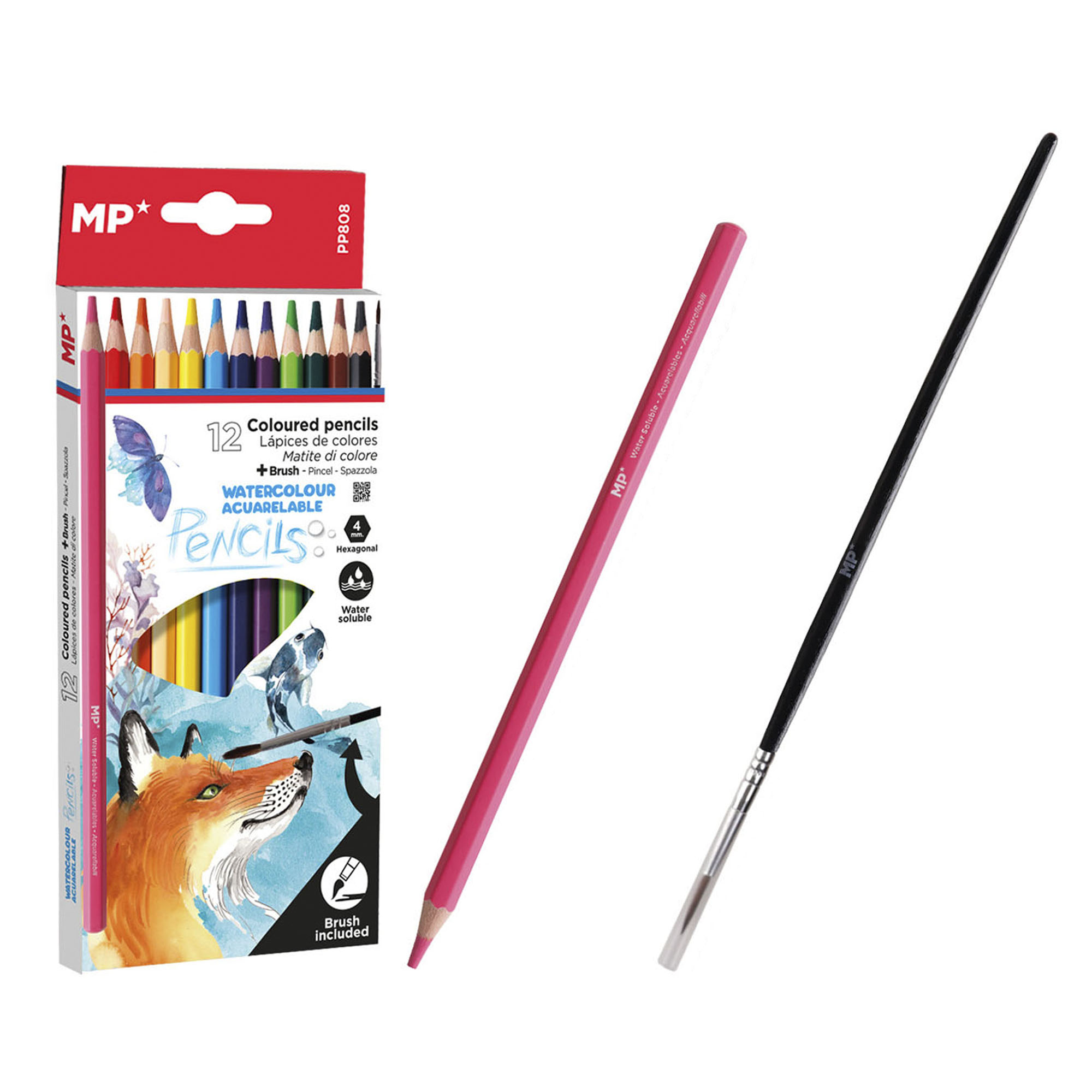 • Mine de 3 mm. Étui de 12 couleurs.