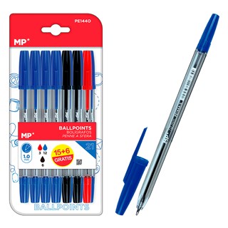 • Taille : 145 mm. Présentation en blister de 21 stylos : 12 bleus, 6 noirs et 3 rouges.