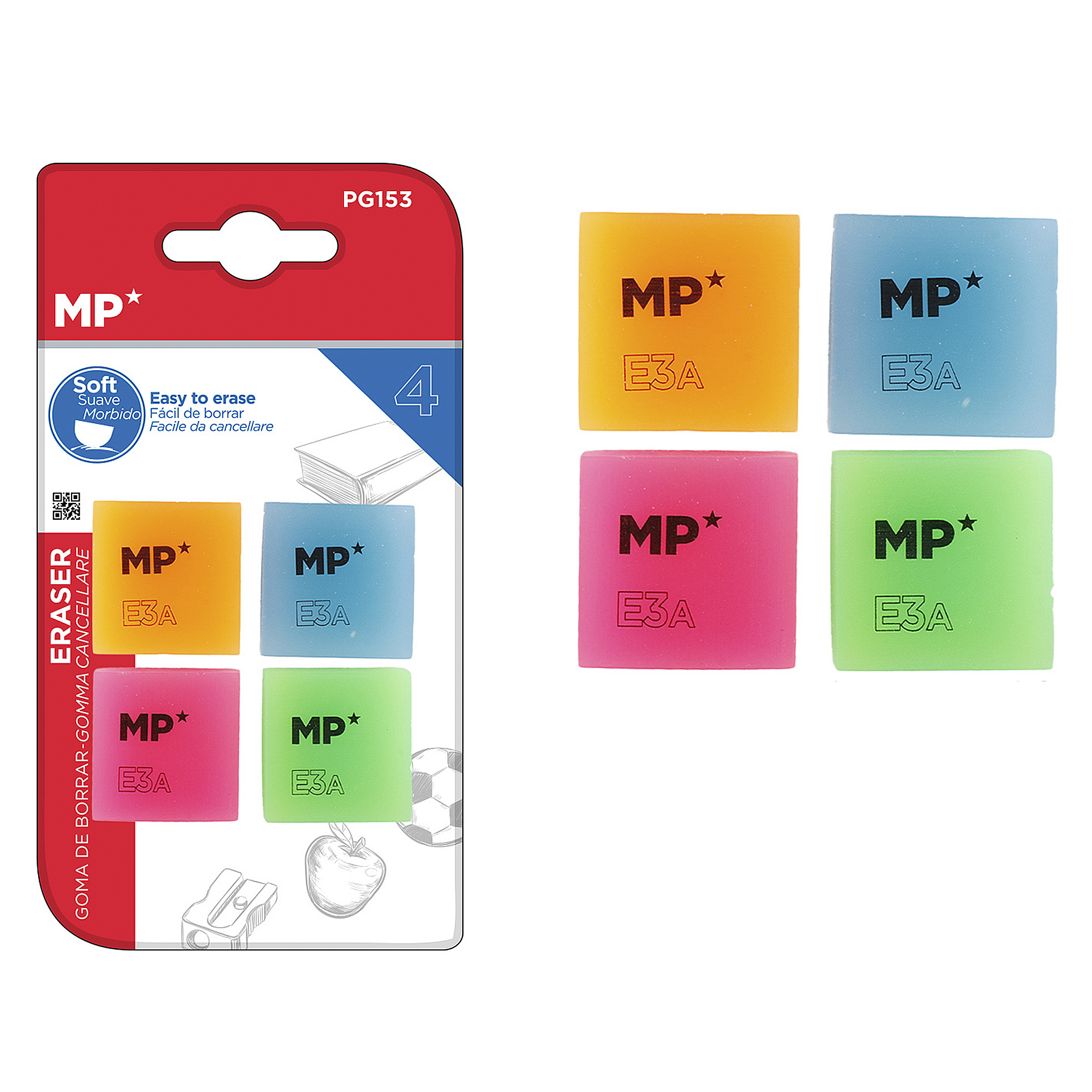 • Couleurs assorties : orange, rose, bleu et vert. Blister de 4 unités.