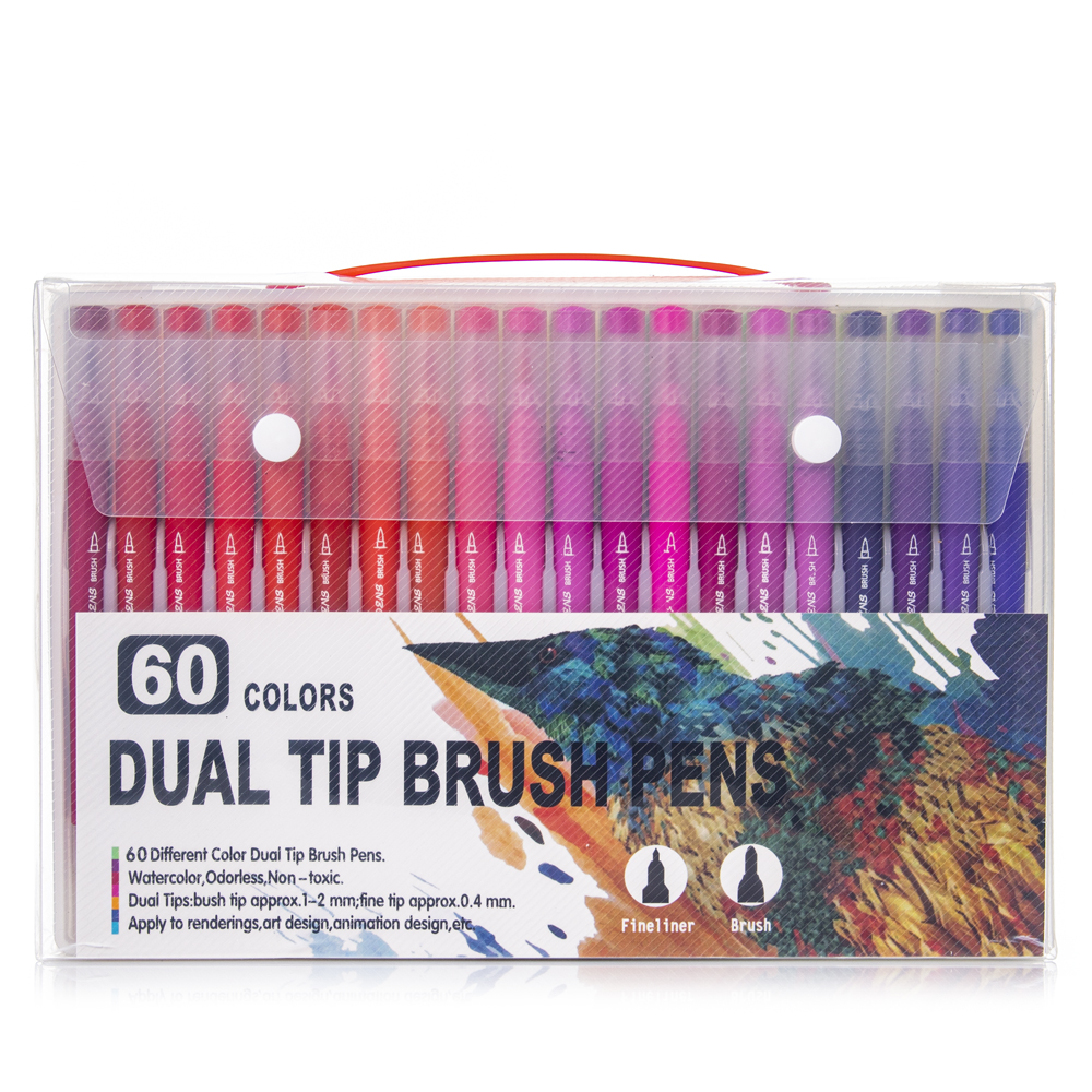 Ensemble de 60 marqueurs double pointe, pointe fine 0,4 mm.